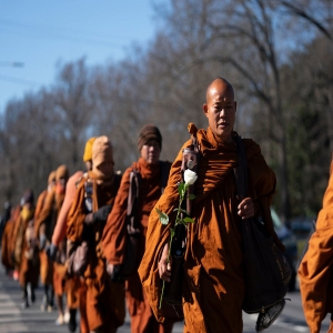 Venerable Bhikkhu Pannakara, the group's gentle, soft-spoken leader, offered mindfulness teachings at stops along the route. "My hope is that when this walk ends, the people we met will continue practicing mindfulness and find peace," he said.